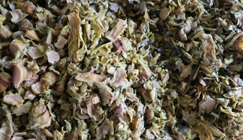 榨菜削下來的皮,韌性好,非常結實,并且比較長,一般擠壓機很難處理,會卡,或者打滑不進料,或者脫水率很低,因為沒有破碎功能,我公司擠壓脫水機自帶破碎功能,不會卡,不會打滑,經過壓榨脫水后,脫水率可以達到70%,解決了目前廢渣減量問題,達到運輸與環保目的。