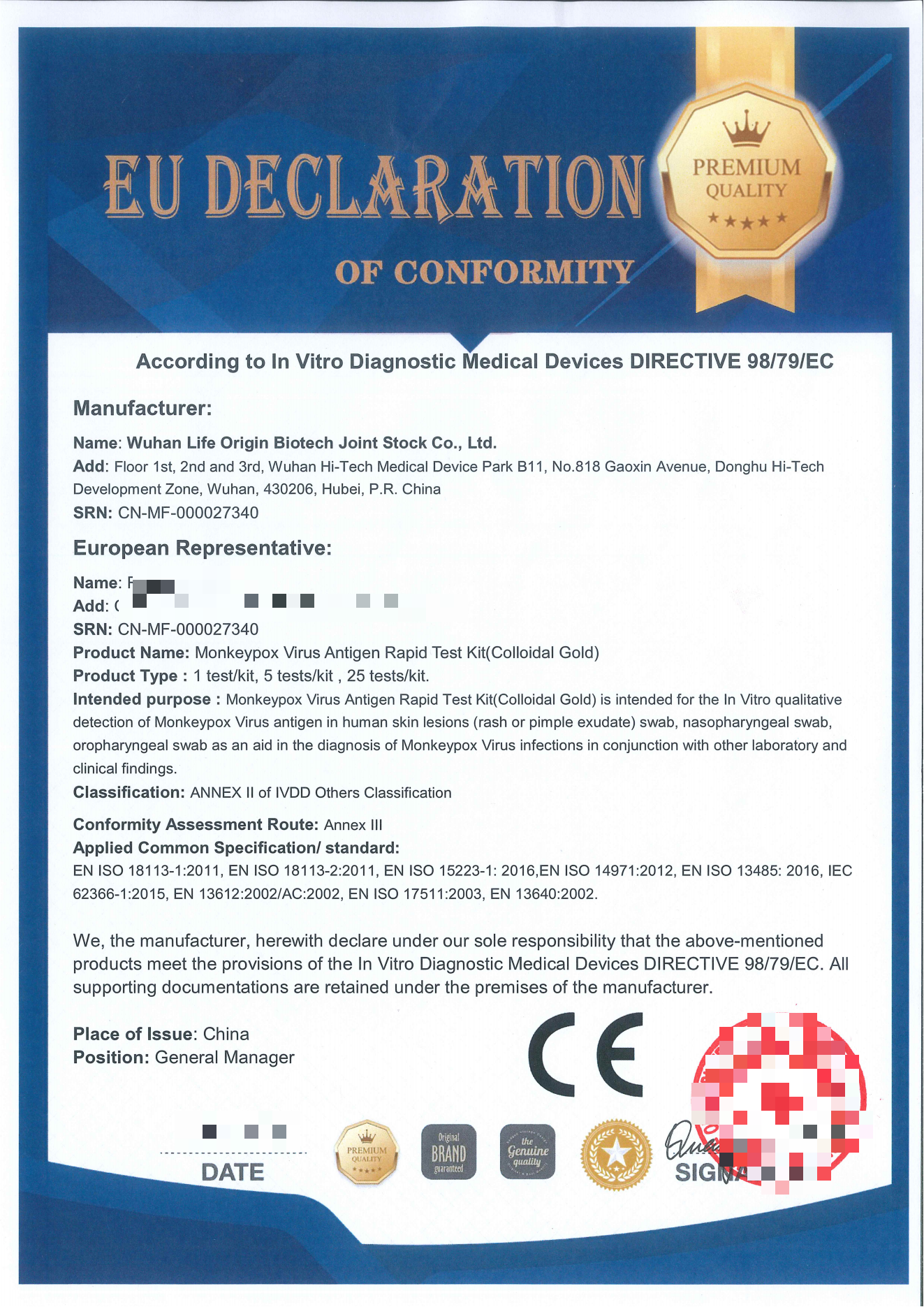 快訊||武漢生之源生物獲得歐盟猴痘病毒(MPXV)抗原、IgM/IgG抗體檢測產(chǎn)品CE認(rèn)證