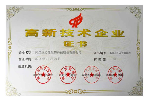 近日,武漢生之源憑借多項(xiàng)授權(quán)發(fā)明專利,以及較好的技術(shù)成果,順利通過高新技術(shù)企業(yè)復(fù)審。在未來3年,公司將繼續(xù)享受國家關(guān)于高新技術(shù)企業(yè)的相關(guān)優(yōu)惠政策,證書編號(hào):GR201642001670。