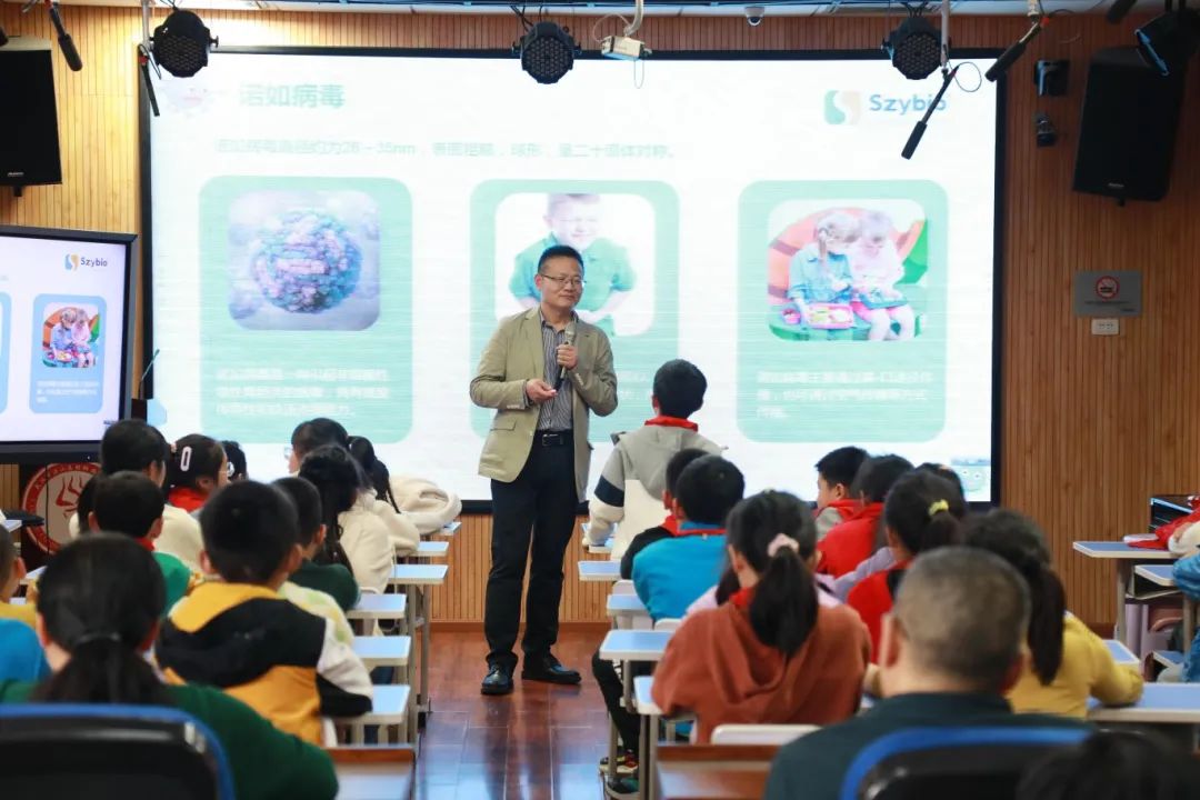華權(quán)高以病毒的起源為切入點,用幽默風(fēng)趣的語言、生動形象的方式,從什么是病毒、身邊有哪些常見病毒、為什么要檢測病毒、怎么檢測病毒、生活中如何預(yù)防病毒感染、科學(xué)家在病毒檢測中做了哪些貢獻(xiàn)六個方面,為同學(xué)們講解了病毒相關(guān)知識。