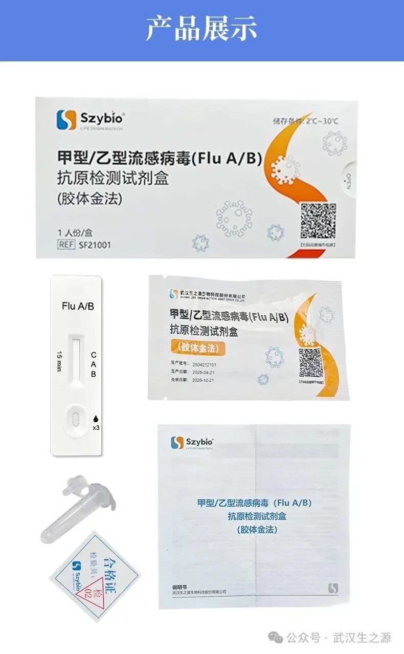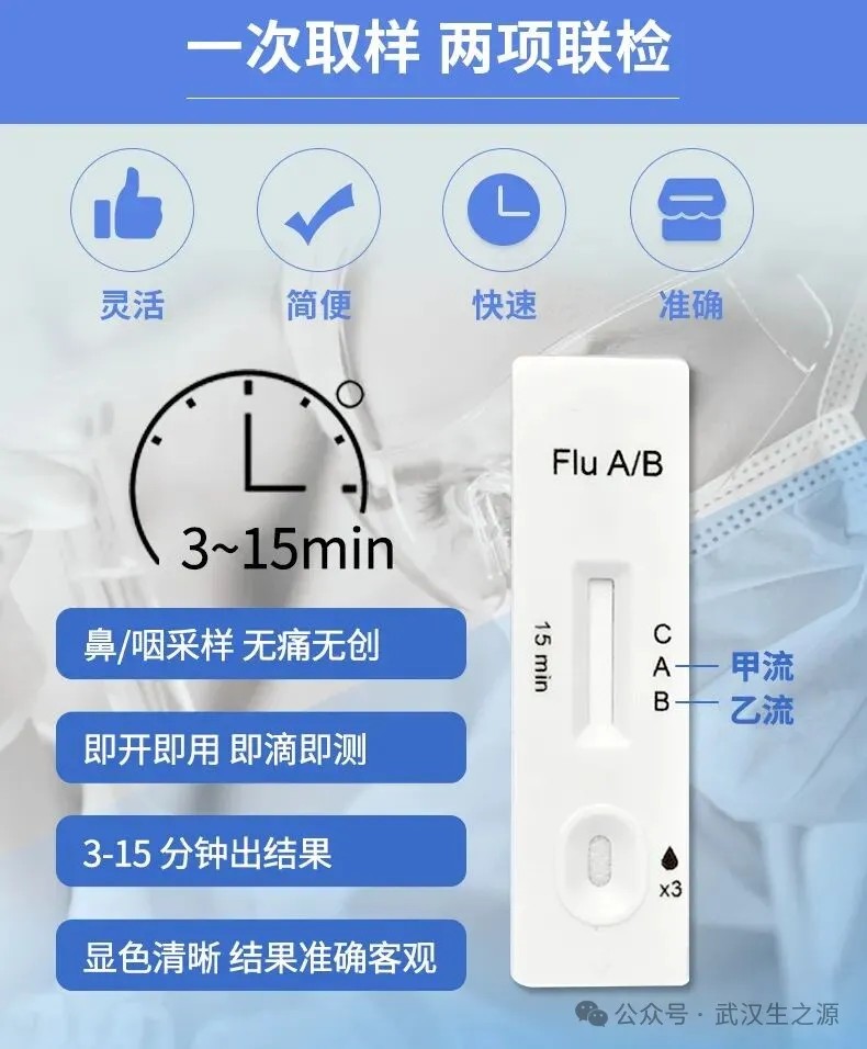 生之源甲型/乙型流感病毒(Flu A/B)抗原檢測試劑盒(膠體金法)精準(zhǔn)匹配當(dāng)前主流疫情:可準(zhǔn)確檢測甲型流感(覆蓋H3N2亞型),助力門急診快速分流,降低院內(nèi)交叉感染風(fēng)險,提升診療效率,為臨床診斷提供重要參考;